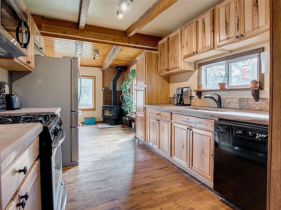This 2 bedroom one bath home is located on over half an acre has a recently updated kitchen, stainless steel appliances and new exterior paint. Great location just 15 minutes north of Black Hawk. Easy access to Golden and Boulder. This flat lot has a storage shed and is fenced for pets or children. There is an additional one bedroom, one bath apartment over the 4 car tandem, detached garage great for extended families or a rental.
