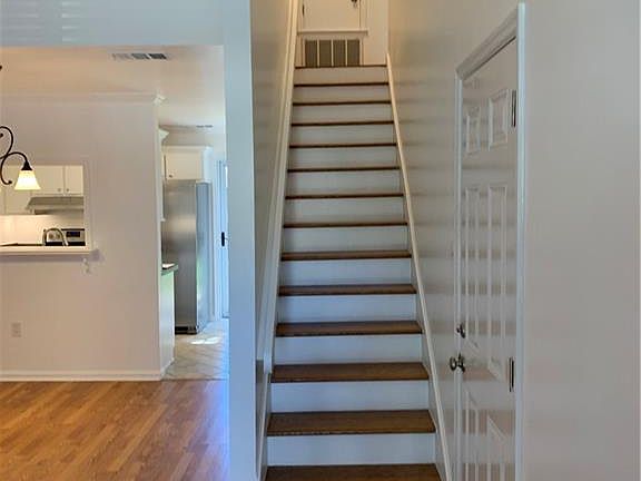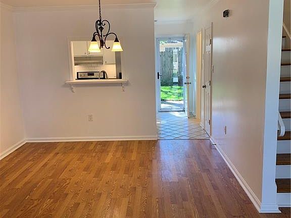 Freshly Painted throughout. Hardwood floors and crown moldings. Combination Living & Dining Rooms. Nice size galley kitchen with all appliances and pantry/storage. Ceiling fans in bedrooms and living room. Central Heat & Air (electric). Gas Water Heater, the gas is included. One car garage with opener plus the washer/dryer are located here and also included. Privacy fenced yard features patio and fire pit. Sorry...no pets allowed.
