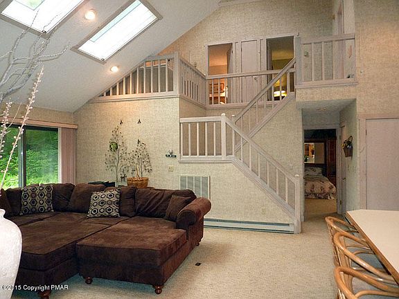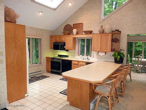 Secluded 3 bedroom 2 bath Contemporary, that backs up to the State Game-lands. This home features a glass enclosed dining room/family room that provides a panoramic view of natural beauty all year long. New roof, new skylights, newly redone crawl space. Master bedroom suite has a jacuzzi tub as well as a separate shower. 2 car garage. Close to the newly remodeled Timber Trails clubhouse, golf course, pool, and tennis courts.