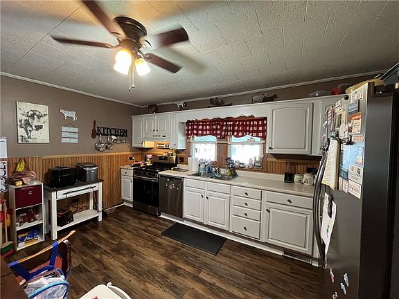Move right into this updated ranch home, with beautifully fenced-in yard, and oversized 2 car garage. Large updated kitchen with nice stainless steel appliances. Plenty of closet space throughout. Main floor laundry area. Nice covered porches on both the front and rear of the house.