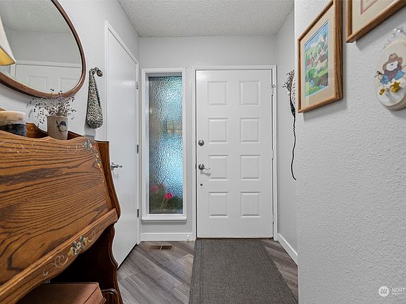 Highly sought-after one-level ground-floor condo in downtown Lynden! This exquisite residence is located in a vibrant 55 & up community that is sure to impress. Immerse yourself in the charm of this historic town while enjoying the convenience of being just steps away from local restaurants. The tastefully renovated 2 bed 2 bath boasts a seamless blend of style and functionality, creating an inviting atmosphere that you'll love coming home to. Windows ft new privacy film & blinds. Primary suite boasts an en-suite bathroom, providing privacy and convenience. In addition to the stunning interior, this condo also offers the convenience of a low-maintenance lifestyle. Say goodbye to yard work and hello to more time spent doing what you love.