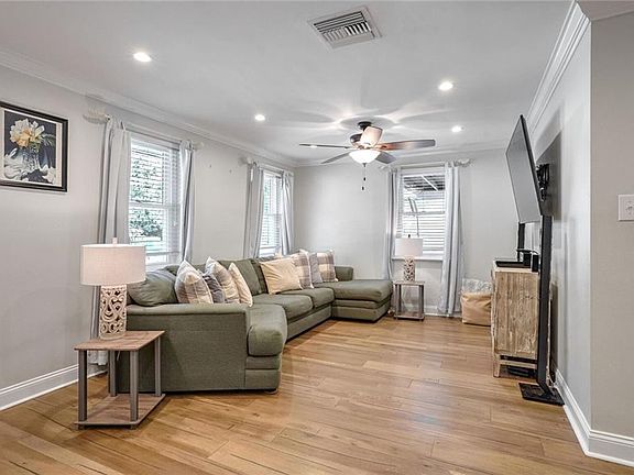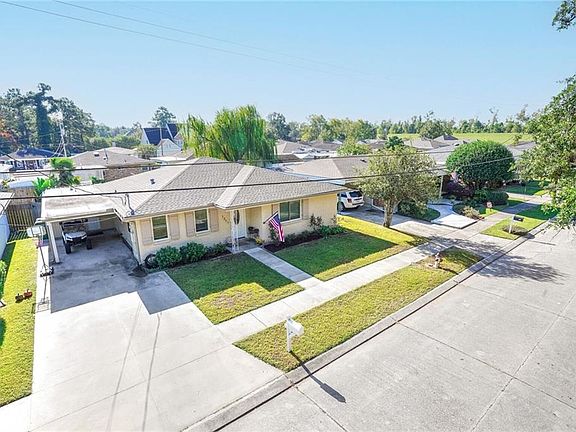 Wonderful renovated home in River Ridge, located only 5 houses from the levee. Complete kitchen and living area renovation in 2018 to create a more open floor plan. Includes all updated and expanded cabinetry, quartzite countertops throughout, large island with seating for 3+, recessed lighting, bar with cabinets, beverage fridge and more! Other improvements include energy efficient windows installed in 2012, with transferable warranty. Enjoy the spacious backyard in the enclosed sunroom, added in 2019, and the covered patio, added in 2020. Great for outdoor entertaining! Energy efficient spray foam added in attic in 2019, lowering utility costs. Attached carport and newly poured driveway (2020), allowing for ample parking and convenience to this charming property. Roof replaced in 2021!