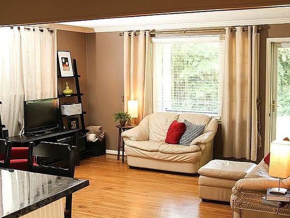 Beautiful home with hardwood floors, Living Room opens to kitchen with island, new lighting throughout, Large finished basement with lots of storage and a bar. The home has a large deck, patio, and a front porch. Firepit and tool shed in backyard. Well maintained home. Office in basement not included in square footage