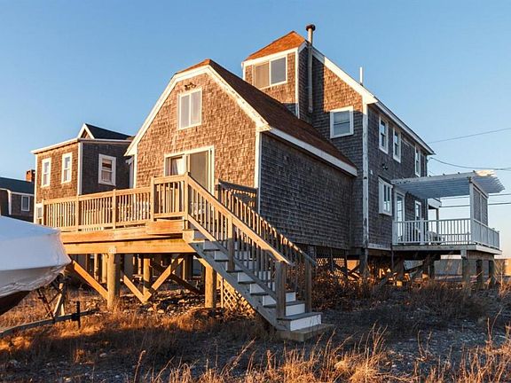Gorgeous front view of Minot lighthouse and the Ocean. Wake up with the Sunrise on the water from Multiple decks. Fabulous Sunsets from the back overlooking Tidal Marsh. Freshly painted expansive interior including a huge open Eat in Kitchen exiting to a Pergola covered side deck. Newer appliances and granite counters with Hardwood Island provides lots of entertaining space in the Kitchen. The Living Room overlooks the Ocean and covered front porch that wraps around to the side deck. Large rear family room leading to yet another deck with sunset views or this room could be a bedroom suite with private full bath . New wall to wall carpeting in the Living room and all bedrooms. Deep window sills and decorative molding add charm to this lovely remodeled antique. The Second floor has a large Master Bedroom with it's own deck, 2nd bedroom in the rear and large full bath w/ Wash/Dry. 3rd floor is front to rear bedroom with tons of space for a play room. Assumable flood insur $632/annua
