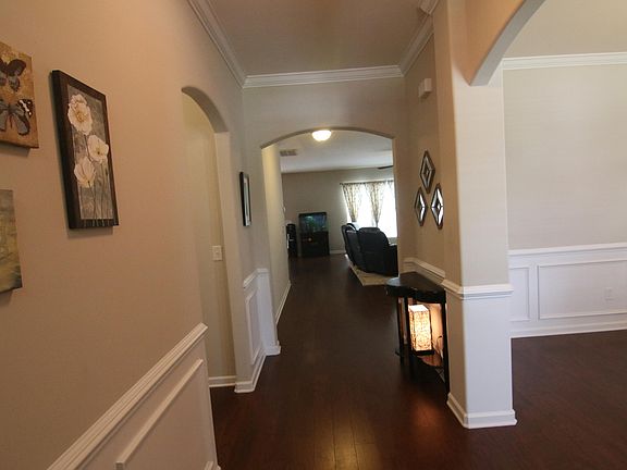 First Floor Guest Bedroom & Full Bath make this home a standout! Welcoming Front Porch, Gorgeous Foyer, Spacious Great Room, Oversized Formal Room, Incredible Kitchen and Upgraded Trim Package are just a few of the special features in this home. Great Room features custom cabinets on either side of the Gas Fireplace. Kitchen is amazing with Center Work Island, Gas Range, Built-In Desk area, 42'' Upper Cabinets, Granite Counters, Tile Back Splash and Large Walk-In Pantry. Foyer, Formal Room, Great Room, Kitchen & Breakfast Area all have Wide Plank Distressed Flooring. King Sized Master Suite on 2nd Floor. Approx 16' x 19 ' Master Bedroom is accented with Tray Ceiling & Crown Molding. Master Bath offer Dual Sinks, Soaking Tub, Separate shower with Tile Surround, Private Water Closet and...Private Linen Closet. Tile Floors in All Baths & Laundry Room. Master plus 3 Bedrooms on 2nd floor, Guest Bedroom & Bath on Main floor giving you the option for 5 bedrooms PLUS a Bonus Room! Hall Bath is upgraded with Large Vanity with Dual Sinks plus separate Bathing Room with Tub/Shower. Bonus Room offers great "flex" space for 2nd Family Room/Game Room/Theatre Room & More. Wide, Double Door Linen Closet in 2nd Floor Hallway - this home offers amazing storage. Extend your living space outside with Deep Rocking Chair Front Porch, Rear Screened Porch and Open Patio. Home backs to woods for privacy and Rear Yard is fenced . Two Car Garage has Finished Walls & Automatic Opener. Security System in place (buyers can take over the contract if they wish to keep this service), Home is under termite bond, Gutters Installed, Ceiling Fans in Great Room, All Bedrooms & on Screened Porch. Sellers will add new sod to rear yard prior to closing. Sidewalk Community with close access to the NEW Neighborhood Pool opening 04/28/2017! Don't miss this amazing home!