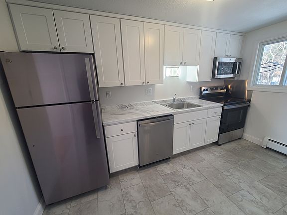 Completely renovated spacious and sunny 2 bedroom apartment . Rent Includes: heat, hot water, trash, sewer, landscaping and snow plowing . Parking spot Included. The move in costs are 1st month rent and security deposit .