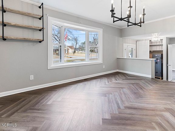 Just outside the heart of Jacksonville, your dream home awaits!! Marvel at the timeless elegance of herringbone-patterned wood flooring that graces the first floor, adding a touch of classic beauty to every room. The attention to detail in the flooring speaks volumes about the quality and craftsmanship of this home. Experience the perfect blend of modern convenience and farmhouse warmth. This home has undergone a tasteful remodel, capturing the essence of contemporary living while preserving the charm of a farmhouse retreat. Your inner chef will rejoice in the gourmet kitchen, equipped with stainless steel appliances, a wine chiller, and a kitchen island. The sleek countertops and tile backsplash harmonize seamlessly to create a culinary haven with the under-cabinet lighting. Discover generously sized living spaces, perfect for both intimate gatherings and grand entertaining. The master bedroom is a sanctuary of tranquility, featuring a reclaimed wood accent wall, and abundant natural light - the epitome of modern farmhouse luxury. Beyond the covered porch awaits an outdoor oasis featuring an inviting above-ground pool seamlessly integrated with a charming deck. Imagine lazy afternoons basking in the sun or entertaining friends under the clear Carolina sky. This thoughtfully designed space combines relaxation and recreation, providing the perfect setting for creating lasting memories. Whether you're cooling off on a warm summer day or hosting a poolside soiree, the pool and deck combination adds an extra layer of allure to this already enchanting property. Home also features RV parking and added electrical hookup. Don't miss the chance to make this modern farmhouse gem your forever home. Schedule a private tour today and enter a world of timeless elegance and contemporary luxury.