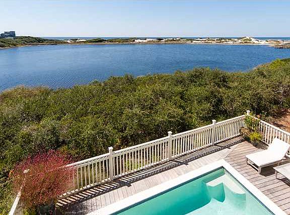 A rare coastal dune lake, protected dunes and the Gulf of Mexico layer to create a majestic, one-of-a-kind landscape that unfolds before this lakefront home in the gated, resort community of WaterSound Beach along Scenic Highway 30A in Northwest Florida. This home, designed by Elements, Tampa, Florida is built on what one could argue is the most desirable lakefront lot in Peninsula at WaterSound, situated near the point with due south orientation towards the Gulf. A brick-paved, arbor-covered path alongside the detached garage leads to the covered front porch where French doors give way to an inviting foyer where a dramatic, free-standing, spiral mahogany staircase leads to the second-floor living spaces.