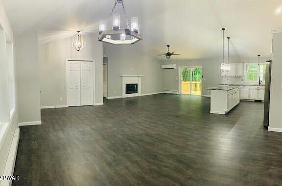 NEW CONSTRUCTION! FININISHED ! Quality and craftsmanship is evident throughout this custom built energy efficient three bedroom two bath ranch home. Close to the town of Milford, set over an acre. Granite counter tops, ultra modern fixtures, beautiful flooring, ,lovely grand primary suite with full bath and soaking tub. Additional spacious bedrooms, Living room fire place, dinning area, kitchen island, two car garage ,laundry room on main level , celling fan in every room plus central air to insure all year comfort. large rear deck over looking an abundance of natural. Located in gated community with amenities including pool, two lakes ,garbage, security, basket and baseball, fishing and boating. Short drive to Pocono water parks and casinos. 90 min drive to NYC, Eating Area: Ultra Modern KT