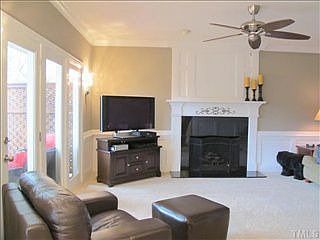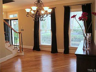 NorthRaleigh 2-story in Wyndham! Newly designed kitchen with granite countertops,stainless appliances, wine cooler,custom cabinets and freshly painted. Hardwoods Just Finished. Updated Lighting. Large family room with fireplace opens onto spacious private 2 level deck. Nine foot ceilings on first floor, back staircase to bonus room. Beautifully landscaped lot. Side entrance garage.
