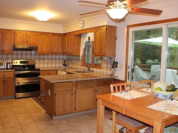 Well maintained home sited on a private 2.97 acre lot backing to preserved land. Home features updated eat in kitchen with composite stone countertops , light oak cabinets open to family room. Sliding doors open to 25x16 private rear deck. Family room features wide plank floors and wood burning fireplace 1st floor laundry and formal living and dining room. Four spacious bedrooms, Master bdrm with full ensuite bath and walk in closet.