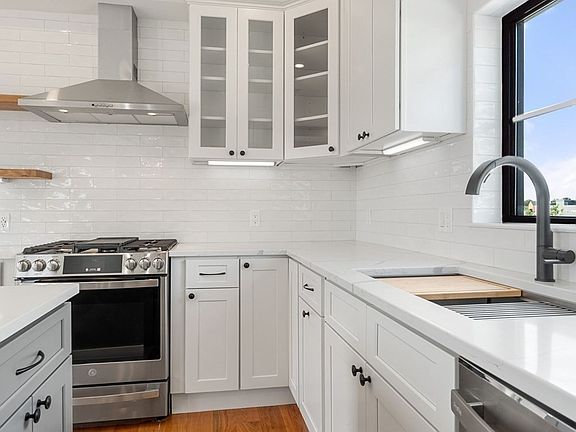 New construction, 2 beds, 2 full baths with (3) private outdoor spaces. Spacious, sun-filled floor-through unit offers 1,082 sf/living space and high 9’ ceilings throughout, 5” oak hardwood floors and deeded basement storage. En suite master bath includes 9' ceilings and custom glass shower doors. Full guest bath includes custom tile, vanity and tub. Open kitchen offers shaker cabinets, center island, Calacatta countertops, custom tile back splash & large 36-inch sink. Stainless GE/Profile appliances include gas stove w/air fryer, chimney hood (vented out), counter-depth fridge, dishwasher, and microwave. Storage is not a problem w/HUGE walk-in pantry. Top-of-the-line, on-demand tankless Navian hot water heaters, Carrier® efficient heat pumps w/AC cooling. Washer dryer hook-up off kitchen area. Enjoy private 12 x 9 rear deck providing direct access to landscaped yard. 12 x 5 front deck and 12 x 15 roof deck. 360 Degree views! Steps to Maverick and Airport stations, Piers Park/shopping.