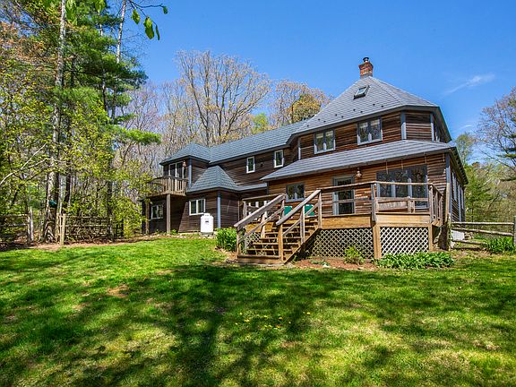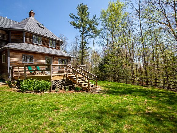 Architect-Designed Retreat on 5+ Acres of Gardens, Orchard, and Pond. Thoughtfully designed by Silverio Architects, this 3-bedroom, 2-bath home is nestled on just over 5 beautifully cultivated acres—where modern sustainability meets homestead charm. Artisan tilework, light-filled living spaces, and sustainably harvested engineered wood floors elevate the interior, while expansive windows frame views of a private pond, mature landscaping, and a spacious front deck with a fenced yard—perfect for gathering or relaxing. The open-concept main floor centers around a cozy woodstove and a custom kitchen featuring floating shelves, a deep stainless sink, and modern appliances. Upstairs, the primary suite offers a walk-in closet, private balcony, and a Jack-and-Jill bath shared with two guest bedrooms. Outside, the land is a gardener's dream: mature fruit trees (apple, pear, plum), a 250 sq ft tiered and irrigated vegetable garden, medicinal herb beds, and established berry patches (raspberry, strawberry, elderberry, and highbush blueberry) provide abundant growing potential. Winding trails meander through the property, inviting exploration and quiet moments in nature. Additional features include an attached two-car garage with direct entry, a powered garden shed, a woodshed, and a chicken coop—offering everything you need for a self-sufficient and beautiful lifestyle.