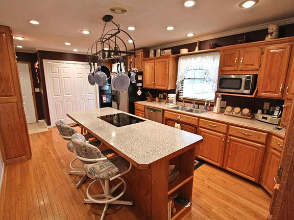 Acreage, 6 car garages and North side of Ozark!!Within 5-10 min of Spfld!Finished basement with 4 bedrooms, 2 living areas,(really large rec room)3 baths, formal dining room,& split bedroom plan.office or hobby room and storage in basement. Updates include: 2005;Sewage lift pump/garage door replaced 2006;32x40 outbldg with concrete floor 110/220 wiring 2007;Carpet on main level and basement 2008; Roof and gutters,water heater,sump pump 2009;Air ducts cleaned,High efficiency furnace 90+ 2010;added water softener,New dishwasher in 2013. Owners have also added exterior door from garage and deck,added cabinets in baths.Stainless steel appliances, hardwoods,jetted tub and walkin shower in MBA.Corner lot with private well.Located east of 65/CC. Ozark schools.Refrig negotiable