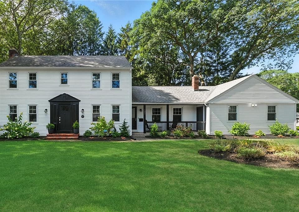 Welcome to this updated and move-in ready 4-bedroom 2.5 bath Colonial in the highly desirable Cowesett neighborhood, just a short walk to downtown East Greenwich, Warwick Heights Tennis Club, shopping, restaurants and marinas. This home has been beautifully renovated and maintained, blending efficiency, comfort and charm. Recent updates include all new windows, siding and custom doors, air conditioning, refreshed lighting and professional landscaping. As you enter the foyer you'll be greeted with hardwood floors and custom woodwork on the stairs and hallway. The well-appointed, white eat-in kitchen anchors the main floor, leading into the family room which features coffered ceilings, custom window blinds, and French doors out to the deck, perfect for entertaining. All bathrooms have been updated and are modern and bright. Sip your morning coffee on your front porch or stroll down to one of the many cafes in EG-this is your perfect new home!
