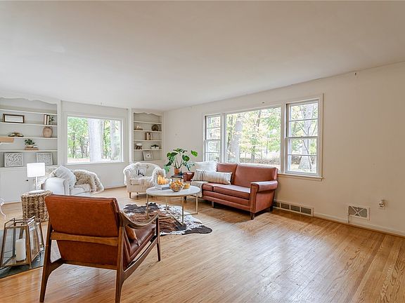 Fabulous mid-century modern Cape Cod nestled on 1.2 acres in the heart of Irondequoit. Original owners since 1956 speaks volumes to the functionality and longevity of this wonderful property - this is a RARE opportunity! This 4 (possible 5) bedroom / 2 full bath home offers flexible living spaces ready to be custom tailored for your needs and lifestyle: options include multiple home offices, a den, first floor living, and second floor walk-in closet and vanity offering endless possibilities. The open concept living/dining room feature gorgeous hardwoods, a wood burning fireplace, picture frame windows and built-in bookshelves and display cabinets. The 4 season Florida sun room boasts a gas stove and sliding glass doors where you can take full advantage of your park-like wooded lot. Ceramic tiled foyer, huge walk-in coat closet, and partially finished basement. BRAND NEW electric service. Only minutes from Durand Eastman Park, 590, and other local amenities. Showings begin 11/2 and offer review will begin at the conclusion of the open house Saturday 11/5 @ 3pm.