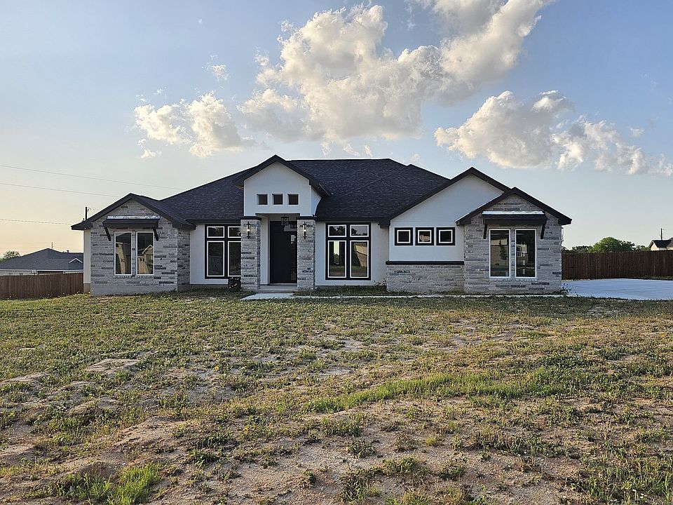 Beautiful 4BR/3.5BA custom home w/elegant elevation on 1 ac corner Lot. A luxury metal door welcomes you into a high foyer next to the study with metal frame doors and dining room. A kitchen w/quartz, super large island, b-splash, & S.S. appliances. LR w/wood beams. Relax in M-BR w/exposed c-beams. M-BA w/soaker tub, shower w/custom b-splash, & custom walk-in closet. Add'l upgrades: High ceilings, custom cabinetry, accent lighting, ceilings, front side with stone. Relax or entertain in spacious covered patio accented by a fireplace. Enjoy your summer evenings. Can see City of SA lights.