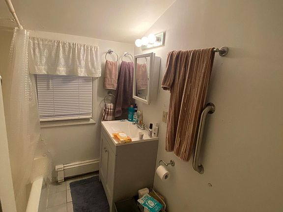 Updated quiet 2BR for rent on one of the nicest streets in Ridgefield Park. Apartment has been well maintained and is very private. Carpet throughout. The dining area has a view overlooking the oversized lot. New vanity and stove. Walk 1 block to 20 minute express bus to Port Authority 42nd street NYC. Walk to schools, main street for restaurants, supermarket and shopping. Convivence store around corner. No car needed as neighborhood has retail in walking distance. Lanscaping and snow removal incuded.