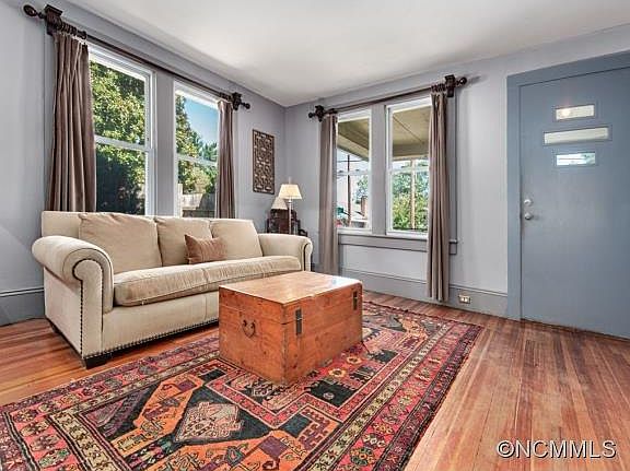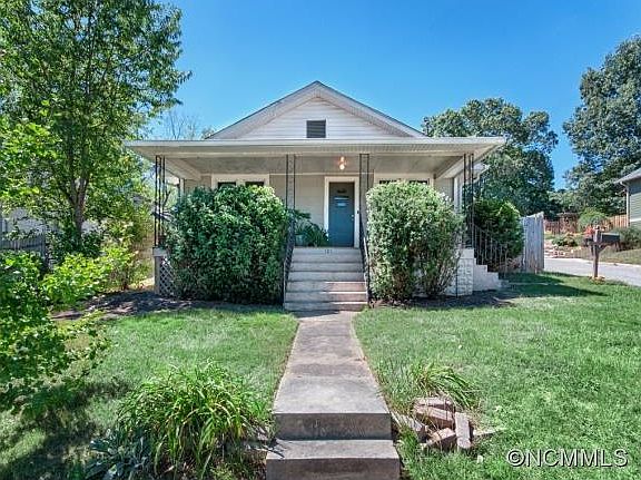 Classic bungalow in the heart of West Asheville! Large rooms, heart of pine wood floors, and lots of windows. Covered front porch, and fenced backyard for outdoor living and pets. Large laundry/utility room offers an opportunity to expand and add a second bath. Newer detached double garage with separate drive.