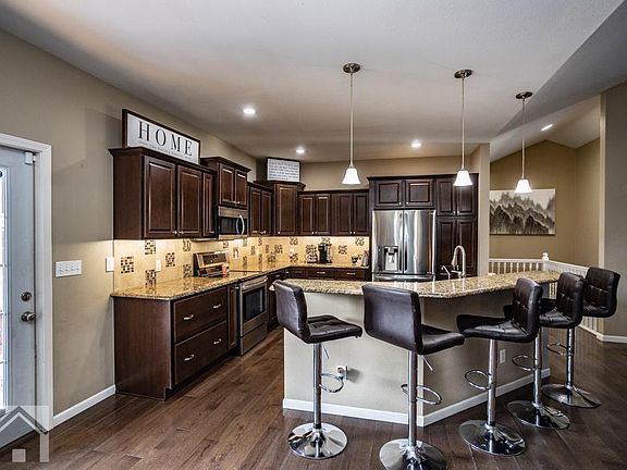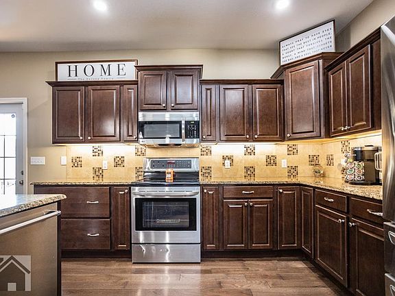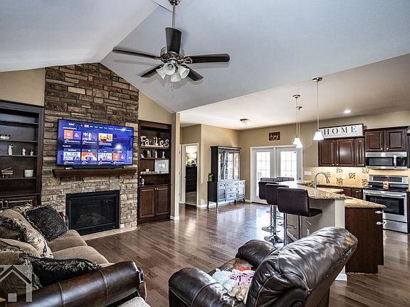 Custom built! Popular Briar Pointe subdivision! Enter to discover a vaulted open living room, kitchen, dining area w/beautiful wood floors & gas fireplace. The kitchen is definitely stunning w/custom offset cabinets, granite countertops, island, & stainless appliances. The master bedroom suite has a tray ceiling, double vanity, corner jetted tub w/window surround, tiled shower, & large walk in closet. Two guest rooms are on the main floor w/full guest bath. Downstairs is a great space to hang w/friends to watch the game with a TV projector set up (projector not included). There is also a wet bar! Two more guest bedrooms & full bath are downstairs, along w/an unfinished storage room. Other great features are a double deck with Natural gas for the grill & fire table, privacy fenced yard, new carpet in 2020, main floor laundry & shed! Hurry, this one won't last long! SqFt. 1631 Base/2800 Finished/3724 total