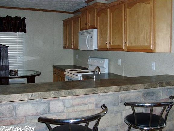 Nice 3/2 manufactured home on appx 1 1/2 acres. Large master bedroom and bath. Shower and large tub in bath. Kitchen has breakfast bar separating it from living room. Fireplace in living room. Nearly new metal roof. Nice deck on the front.