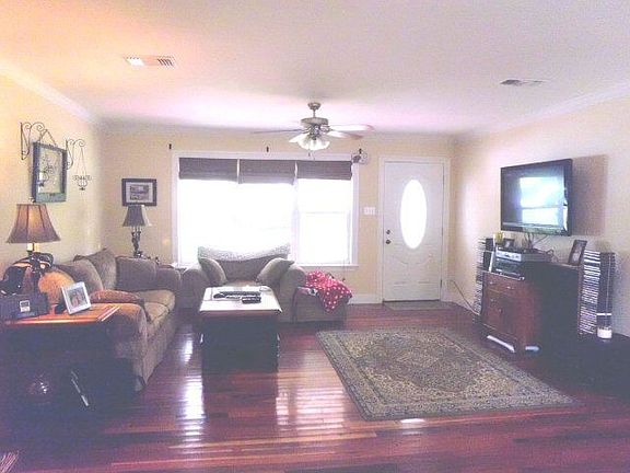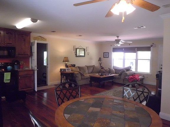Remodeled in recent years, immaculate and move in ready. Beautiful real wood floors throughout open floor plan and bedrooms. Huge utility room. Fresh paint. Double sinks in bathroom. Satsuma tree, fig tree and grape vine all on 1+ fenced in acre.