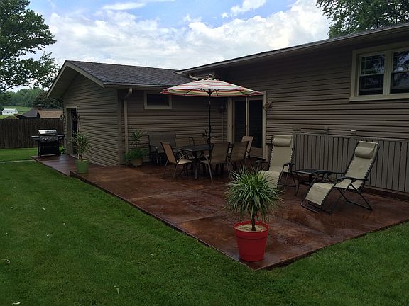 Ranch home sits on almost 1 acre flat lot. 3 bedrooms and 2 1/2 baths on private drive, updated kitchen and bath, new roof, siding and windows in 2005, full basement with inside and outside access, over sized two-car garage, large concrete patio, flat lot with room to expand.