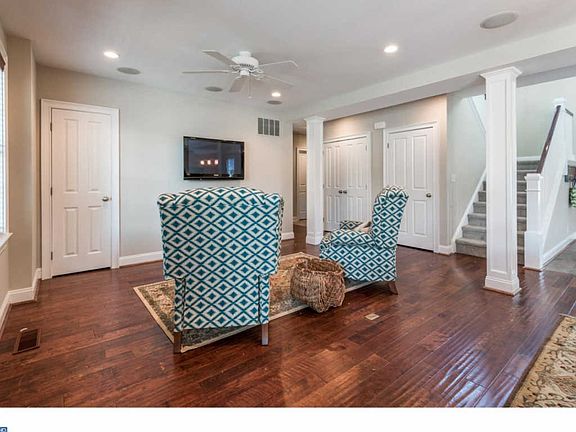 Fabulous, recent total renovation in sought after Conshohocken. Enter this gem through the covered porch straight into the tiled foyer that expands to the open concept living area. Windows galore and architectural columns let in an abundance of light and add drama to the living room with cozy fireplace. Hardwoods throughout the first floor that includes an oversized kitchen, dining area and a family gathering room. The kitchen is a chef's dream! Island work space with seating for 4 in addition to a breakfast bar that can seat 3, pantry and stainless steel appliances makes this the home's hub. The master bedroom is spacious and boasts lots of closet space plus a bath complete with whirlpool tub, stall shower and double sinks. The two additional bedrooms each have their own bathrooms. Basement is fully finished with bar, sink and full size refrigerator as well as additional living and office space. Once outside you will bask in the tranquility of the yard with deck and patio for those late night gatherings with friends. Don't hesitate, this beautiful home will not last long.