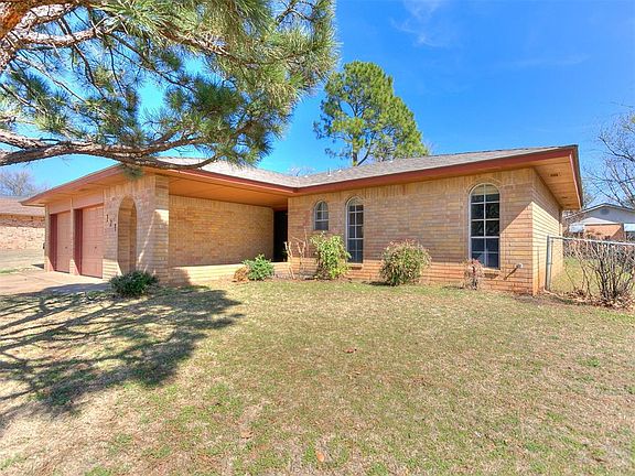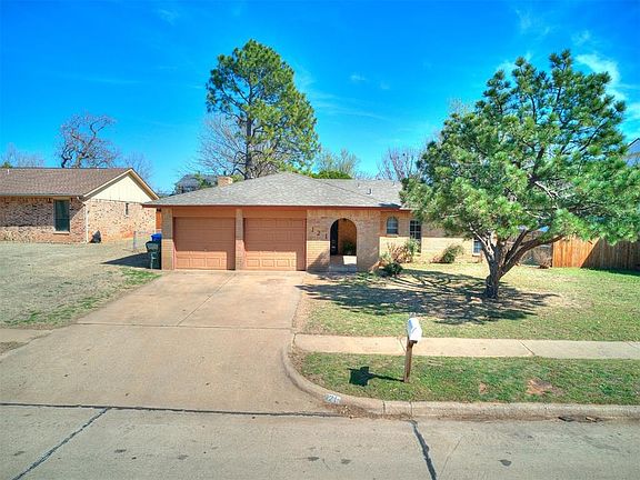 **Multiple offers. Highest and Best due Saturday, March 9th at 7pm**West Norman home priced under $200,000! This 3 bed 2 bath brick home built in 1974 would be a perfect starter home for a first-time home buyer! Out front is a covered concrete patio, suitable for enjoying your favorite beverage while watching the sunset on a banner Oklahoma evening. The roomy kitchen/dining room has plenty of cabinet space, painted cabinets and tiled floors. The wall between the kitchen and living room has arched openings which gives it an open-concept feel. The living room has beautiful engineered hardwood flooring, vaulted ceilings with wood beams, and a gas fireplace between two painted built-in book cases. Off the living room is a sliding glass door leading to the partially-covered back patio and backyard. The laundry is setup between the 2-car garage and kitchen. The primary bedroom has new laminate flooring and an en suite primary bathroom with a shower. The secondary bedrooms also have new laminate flooring. The hall bath has a tub/shower combo with recessed lighting, and recessed lighting in the hallway and entryway as well. New roof in 2022, new AC and heat system in 2022, and new sewer line installed in the house in 2021. On the South side of the neighborhood is Cherry Creek Park, and the home has easy access to I-35, Sooner Mall, Brookhaven Village and University North Park shopping.