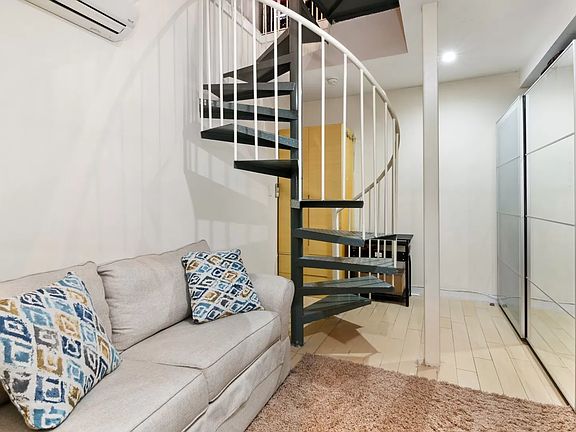 $650,000 + super low monthly costs (including tax abatement until 2026) = a great opportunity for home seekers and investors alike! (only for long-term rentals). This great duplex maximizes cost, function, space and flexibility. Added to the wonderful location and building amenities, this is the opportunity you have been waiting for! Apartment 1A at 121 Kingsland Avenue is a contemporary 1-bedroom home with the added advantage of the duplex layout. On the main floor there is a nicely-sized bedroom, a full and big bathroom perfect to unwind and relax, open kitchen and nicely sized living room. The modern kitchen is fully equipped with stainless steel appliances, a breakfast bar, a wine cooler, and stunning grey lacquer and glass cabinetry. The apartment boasts a very flexible layout perfect for working/relaxing/hosting/creating. One flight down (accessed via internal spiral staircase or independent basement entrance) there is a nicely sized room that is great for an office, studio, rec-room or guest-room, along with an ample half bathroom with W/D and great closet space. Split air-conditioning units are strategically installed throughout the apartment. Apartment 1A's open layout and feel mirrors the ambiance of the easily-accessed and beautiful common roof deck with 360-degree views. 121 Kingsland Ave has very low common charges, plus the building has a tax abatement in place until 2026. This intimate condo building has a modern feel and is located steps from Williamsburg's notable McCarren Park and Graham Avenue shopping district, which is filled with unbeatable cuisine, bustling nightlife and spectacular shopping. 121 Kingsland Avenue is just 3 stops from Manhattan on the L train from the nearby Graham Avenue stop. The building also has a part-time superintendent. Showings by appointment only >> OPEN HOUSE Sunday May 15th 11:30-12:30