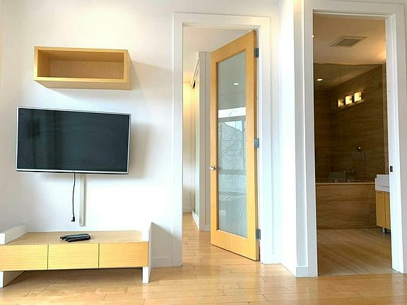Experience all the luxuries that this immaculate one bedroom apartment has to offer, located in the heart of Williamsburg you will be in the heart and soul of New York City art scene. Williamsburg, one of NYC's most diverse neighborhoods is blessed with tons of bar like One Stop Beer Stop located a block away and restaurants such as Nha Minh & Hungry Burrito. There are also plenty of gyms & social events/gatherings to offer you in the area. Blocks away from McCarren park & Graham Ave shopping district, your new apartment is serviced by the L subway line at Graham Ave which will take you into Manhattan within 5 minutes. Your luxury apartment comes with all modern amenities including modern kitchen fully equipped with stainless steel appliances, washer and dryer, breakfast bar and wine cooler. Enjoy great views from the large 75sf balcony while the apartment's open floor plan and floor-to-ceiling windows fill the home with natural light. The custom made whirlpool bath with built in TV, shower and sauna give you the perfect setting to unwind and relax. Perfect for entertaining and hosting, this apartment has it all. Amenities: Washer & Dryer Dishwasher Wine Cooler Balcony Roof Deck Sauna Jacuzzi w/inset TV