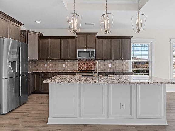 - Features: Breakfast Bar, Kitchen Island, Pantry, Stainless Steel Appliances, Solid Surface Counters
