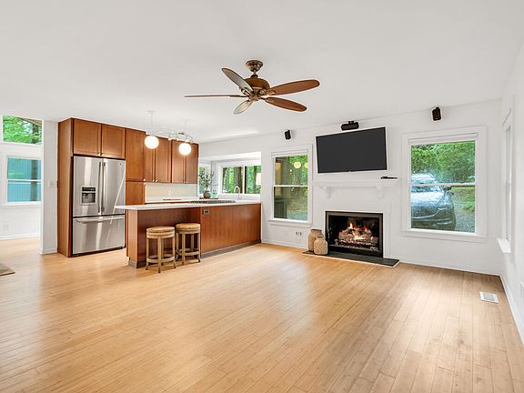 Discover your tranquil retreat in this stylish 3-bedroom, 2-bathroom contemporary home that offers the ideal blend of peaceful living and urban convenience. The thoughtful design of this multi-level home, offers a perfect blend of open living and private retreats. The main floor welcomes you with a seamless open-concept living space, ideal for entertaining and everyday living. Descend to the lower level, where you'll find two comfortable bedrooms and a full bathroom, providing a separate zone for family or guests. The entire upper level is a private sanctuary dedicated to the primary suite. This includes a generously sized bedroom with its own private screened in balcony, a modern bathroom set up with a separate toilet room, dual vanity and a beautifully tiled step in shower, and an oversized walk-in closet boasting built-in shelving and the added convenience of laundry right where you need it most. This layout offers both connection and privacy for everyone. Step out onto the large back deck to enjoy outdoor living at its finest. The expansive back deck overlooks the sprawling, fully fenced backyard oasis, complete with a archway trellis leading to the cozy fire pit, this is the ideal set up for entertaining, dining al fresco, or unwinding after a long day. Enjoy this truly unique property in a quiet neighborhood setting but just moments away from shops, restaurants, Twin Lakes Golf Club, and all that Chapel Hill, Pittsboro and the rest of the Triangle has to offer.