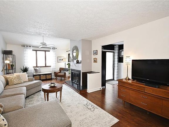 Fabulous floorplan in this recently renovated townhome! Spacious and unique, this home has not one, but two, master suites both with walk-in closets and updated baths. Laundry is also conveniently located on this level! The large light-filled living room will accommodate the most comfy of furnishings and has a private balcony that can also be accessed from the 3rd bedroom (currently set up as a home office). The kitchen design has been refreshed to allow for a great entertaining space - includes a wetbar, wine chiller, flexible dining room and eat-in-kitchen, and granite counter seating. Let the party flow outside to the deck with bench seating and access to the wooded yard. Downstairs is a huge family room with brand new carpeting and abundant storage options. Attractive pebble floor in the extended two car garage. Low maintenance fee includes grass cutting and care of common areas. This home is a true pleasure to show!