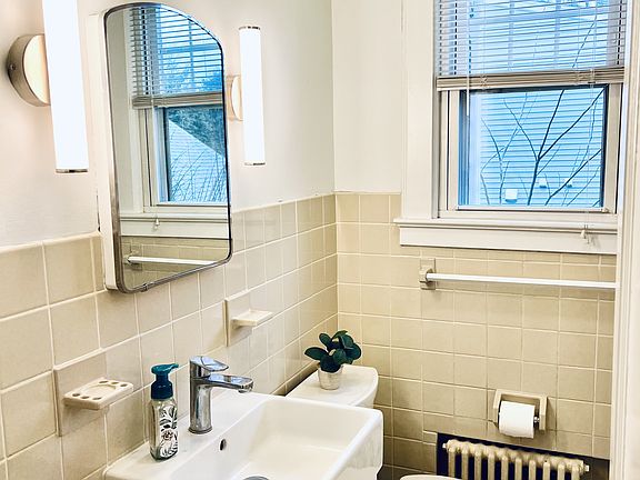 Bright and updated First floor 2 bedroom apartment w/updated Kitchen -stainless steel appliances and dishwasher. Rec Room and Laundry in basement with front load Washer/ dryer. Great location (close proximity to NYC bound transportation, both bus and/or train);close to downtown shops, restaurants, parks, Walk to Whole Foods. Walking distance to Elementary and middle school. Tenant responsible for all utilities and first $150 (non cumulative) of repairs. Landlord will be responsible for normal water usage, lawn maintenance and snow removal. Garage parking for 1 car available for $150/month. No Smoking in building/premises. Renters insurance required , Credit check needed. Owner holds Real estate license.