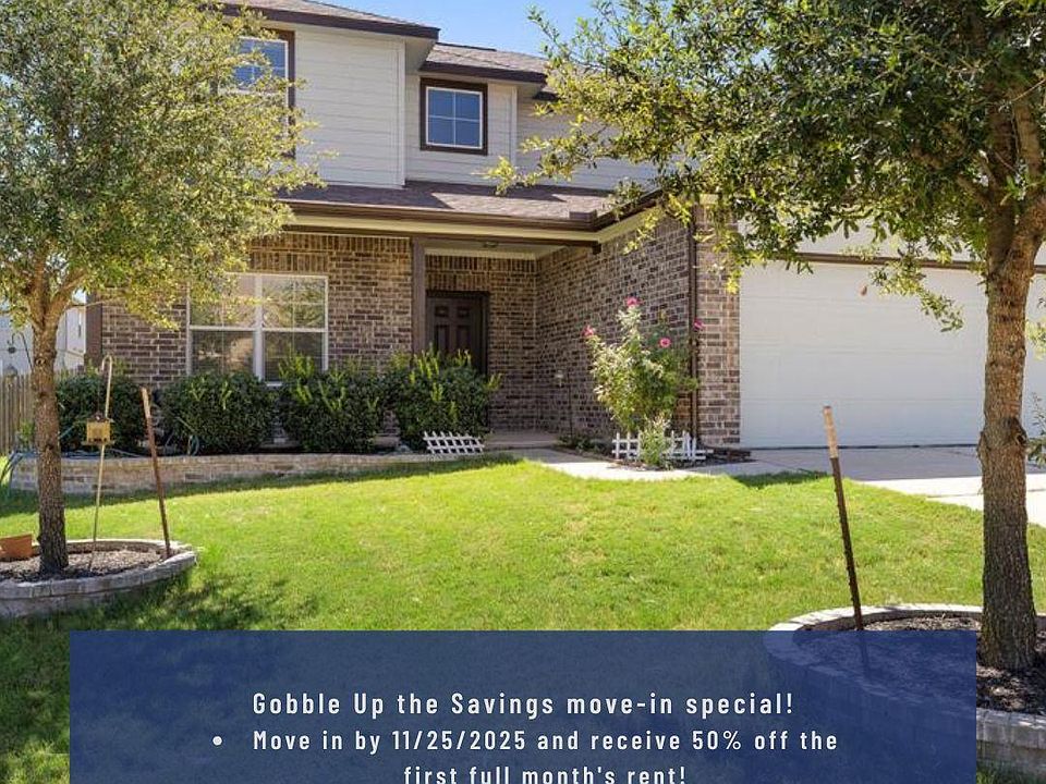 * This November, treat yourself to a thanks-giving-ly beautiful home! Move in by 11/25/2025 and get 50% OFF your first full month's rent! - Welcome to this stunning 4-bedroom, 2.5-bathroom home, perfectly situated in a peaceful and family-friendly Hutto community. From the moment you arrive, you'll notice the fresh curb appeal, thanks to brand-new exterior paint and a newly installed roof. Step inside to a bright, open-concept layout that blends modern comfort with timeless style. The spacious living and kitchen area is ideal for both everyday living and entertaining, featuring ample counter space, an island, and finishes that are sure to impress any home chef. Fresh interior paint and new luxury vinyl plank flooring, combined with tile throughout, meaning no carpet, create a clean, sophisticated feel in every room. The primary suite offers a serene retreat with an en-suite bath featuring a luxurious walk-in shower. Outdoors, the private backyard has been enhanced with a spacious concrete patio, creating the perfect setting for relaxing or hosting guests. This home also includes access to community amenities like the refreshing pools, ideal for enjoying warm Texas days and connecting with neighbors. With thoughtful updates throughout, this beautifully maintained home offers the perfect blend of comfort, functionality, and style. Don't miss the opportunity to lease this exceptional home in one of Hutto's most welcoming neighborhoods schedule your private showing today.