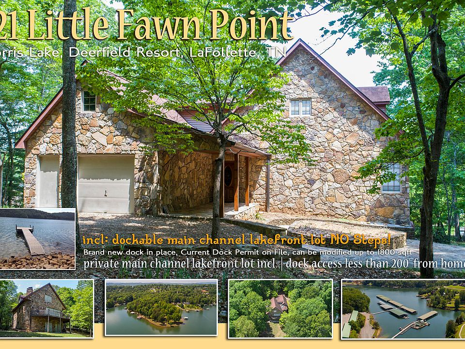 Bring your boat! This stunning one of a kind custom designed, craftsman built home reads like a Story Book. Private lakefront (NEW) dock in place, w/NO STEPS! Level entry, Main Level Living, circular drive, Over 4000sqft, on an enchanted 1+ acre wooded lot(s) in Deerfield Resort. Situated on a year round water Norris Lake peninsula. One can tell the home was lovingly built & meticulously maintained. Every stone of exterior hand selected & placed. The Brazilian Cherry HW floors & natural matls thru out provide an organic warmth & comfort inside & out. (3) unique FPs & MBR suites on each floor, w/room to expand. Please note: Purchase of this home incl lakefront lot Pt. 6 (less than 200ft from the home. non-buildable) that has a new dock/current dock permit on file.