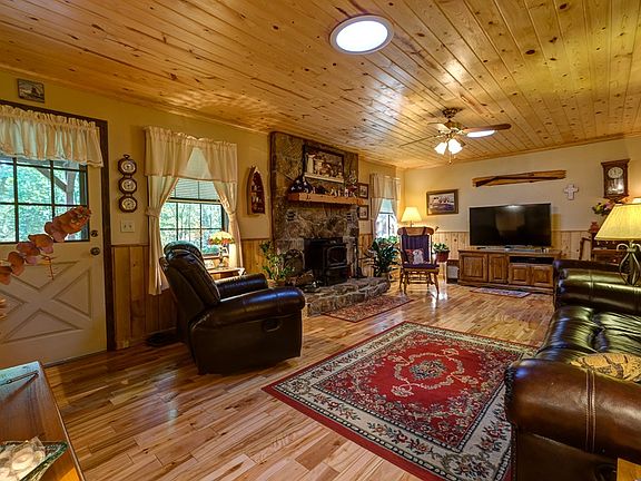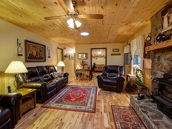 Spacious Ranch sits atop a very usable, gentle 1.76 acres of gorgeously landscaped land! 3 generous bedrooms and 2 baths on the main along with a terrific kitchen, hardwood and tile floors,tongue and groove,screened porch for watching the deer pass through large living area, separate office, and an ample dining room. Open concept floor plan. Walkout basement has living area for gathering + a full bath, you could have a teen or in-law suite. In addition, there is some unfinished space used as a workshop. Over-sized, concrete driveway has plenty of room to park vehicles as well as a double detached garage. The neatest thing is this home is less than 15 minutes to Murphy. A great home!!