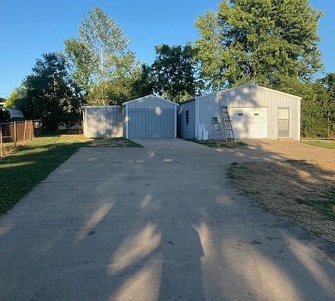 Adorable home with hardwood floors, kitchen and den have new vinyl,. All out buildings have metal roof, fruit trees in yard, central air and heat, new paint, fireplace in den. Patio has brick grill, 12x15