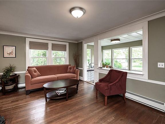 A truly unique home with lots of character and a layout that has to be seen to be appreciated. Bright and Sunny! Spacious kitchen set as the center of the home with lots of counter top space and updated appliances. In the front living room there is all the character with moldings and builts-in bookcases you would hope for plus a working wood burning fireplace and gorgeous sun room with the best natural light. The first floor offers a master bedroom suite with a private bathroom and walk in closet. There is one other bedroom on the first floor, plus two additional bedrooms upstairs with a full bath on the second. Hardwoods everywhere! In the basement you have a large Rec Room and plenty of storage. Outside offers green-space and an over sized one car garage and stone patio. Roof was done in 2007, newer hot water tank, young gas heat with three zones make this a solid investment! Located right off of Route 95 and within minutes to the the Oakhill Park, Blackstone Bike Path, Farmers Market, shops, Universities, Hospitals and restaurants this is a home not to be missed.