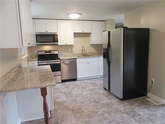 WOW! A total classic make-over featuring a brand new kitchen including white bright cabinetry, stainless appliances, new flooring & lighting, and a new granite counter-top. Plenty of space for all your storage needs. Sun drenched living room, 3 nice bedrooms, all freshly painted and new carpeting througout, and a remodeled gorgeous ceramic bath. The lower level won't disappoint....a super great workshop area, big enough for all of your tools and things, separate laundry area which includes the washer and dryer, another nice sized room which could easily be a bedroom, and a large game-room opening up to your own special paradise! The back patio is perfect for summer grilling, hanging out, and it overlooks the flat yard which abuts up to the woods. Privacy! Host your own BBQ's & fire-pit parties! Most of the yard is shaded and the picnic table and shed stay! The landscaping is gorgeous! Must see, won't last long! All you have to do is bring your stuff and MOVE RIGHT IN!