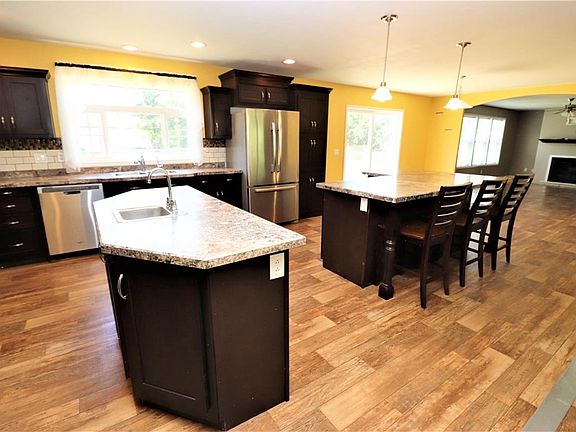 2013 Manufactured home sitting on an owned lot with a large fenced in backyard surrounded by mature trees! This 3 bedroom, 2 bathroom home offers a beautiful kitchen featuring a double island, 2 sinks, lots of cabinet space. The dining room has a sliding patio door to the deck. Laundry room is spacious with counter-top and a sink. You can't miss the huge master bathroom featuring double sinks, large vanity, soaking tub, separate shower and a massive walk-in closet! There is plenty of space here with a family room featuring a fireplace off the dining room and an additional living room off the kitchen. Seller is motivated, priced below city value!