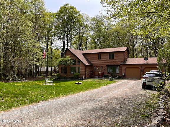 Beautiful Prow Chalet located on 3.56 Acres in a small community just minutes from Lake Wallenpaupack and the Interstate System. Featuring a spacious Warm & Cozy Living Room with an abundance of natural light with a Cathedral Ceiling and beautiful Floor to Ceiling Stone, Wood burning Fireplace as the focal point of the room. The Dining area features a Bar for entertaining and the Eat in kitchen is spacious and well designed. A bedroom, full bath and laundry room are also located on the main level. The primary Suite, additional bedroom and Loft area are located on the second level, making the second level a perfect primary retreat with office, den, or craft room. Let's not forget to enjoy those summer nights entertaining in the Screened in Porch and grilling on the open deck, perfect for large gatherings. The 2-car attached Garage is large enough for additional storage or a workshop. This property has plenty of space for family and friends to relax and enjoy! WASD.