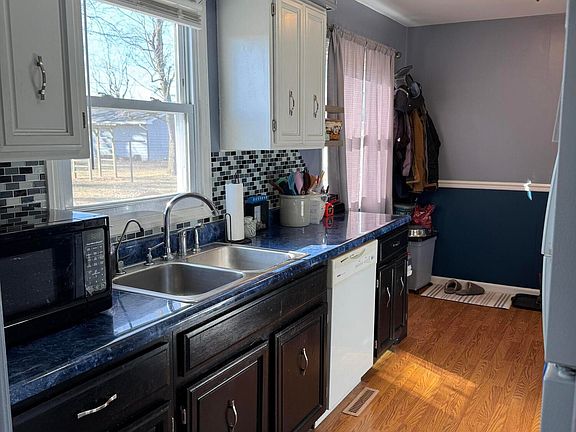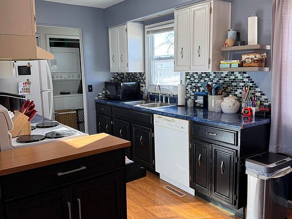 Charming 3 bed 1 bath home located near the school. Don't let the square footage fool you! This well thought out floor plan offers ample storage, a walk in pantry, and a dining area. Enjoy that extra hour of daylight at the end of the day from the front porch or the large back yard. The storage doesn't stop inside. This home offers a deep attached garage as well as a 12x12 storage shed. Updated furnace and central air (2021) Metal roof (2017). Kitchen appliances and a stackable washer and dryer included.