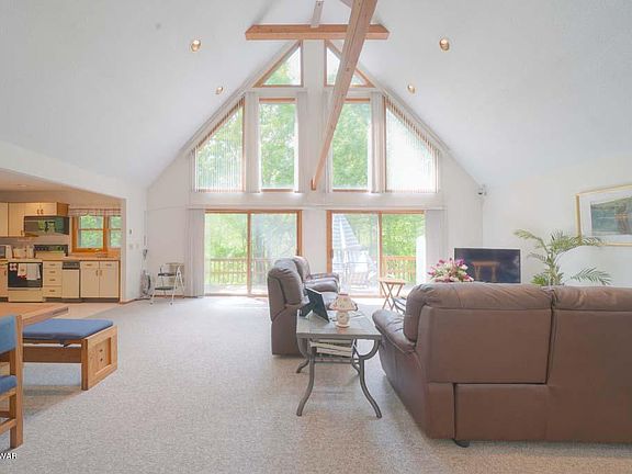 Lake Wallenpaupack Technical Lakefront Home! Home offers wide open floor plan, bright & airy living room with lots of glass & cathedral ceilings, spacious eat-in kitchen, dining area, main level master suite w/ master bath and more! Large lake-side deck overlooking the water, attached 1 car garage and more!