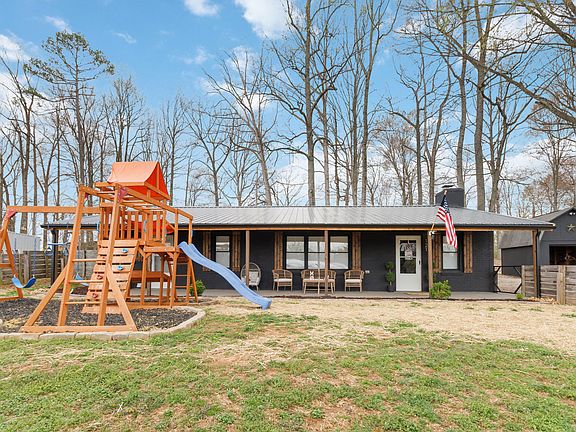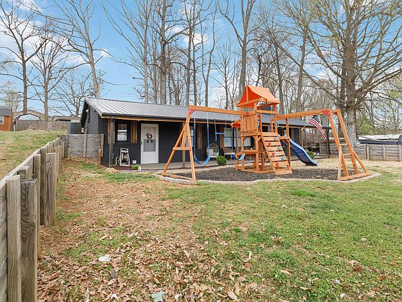 Nestled just minutes from Lake Cumberland and nearest boat ramp, this 3 bed, 2 bath stunning craftsman-style home offers a perfect blend of rustic charm and modern comfort. A modern, black aesthetic, with exposed wood details & the rock, wood-burning fireplace are just a few of the features that make this home stand out. Inside you'll find beautifully updated flooring, fresh paint, and new light fixtures, adding a touch of modern elegance to every room. The kitchen boasts recently updated appliances, including a dishwasher with a 3-year warranty, a new sink, and updated faucets, making cooking enjoyable. The home has been upgraded with modern systems, including a security system, key pad door lock, an HVAC system that's less than two years old with a 10-year parts warranty, and a new water heater with a lifetime warranty. The roof and new gutter system is less than 1 year old which will provide years of worry-free living. Outside, the fenced in front yard offers curb appeal and offers a 15'X11' storage building. Playground in front yard can be removed before closing if preferred.