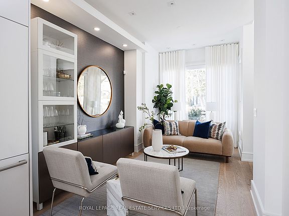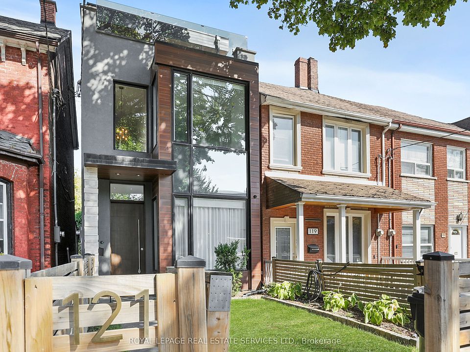 Welcome to your dream home in one of Toronto's most sought-after neighbourhoods: Trinity Bellwood's in vibrant Queen West. Perfectly positioned for convenience, this rare modern residence offers easy access to transit, trendy shopping, top-rated restaurants, and charming cafes, all just steps from your door. Offering nearly 3,200 square feet of thoughtfully designed living space, this home impresses with soaring ceilings and an open-concept main floor that is ideal for both everyday living and effortless entertaining. The stylish living room flows seamlessly into a large, eat-in kitchen and an expansive double-height family room that opens directly to the backyard perfect for indoor-outdoor gatherings. The second floor features two generously sized bedrooms, a small den area ideal for a home office or a study nook, and stylish finishes throughout. The third floor is dedicated to the luxurious primary retreat, complete with a spa-inspired ensuite, a walk-in closet, and a stunning rooftop terrace boasting panoramic views of Toronto's iconic skyline. With 3+1 bedrooms and 5 bathrooms, this home offers flexibility for families, guests, or your work-from-home needs. The oversized garage is a rare bonus, featuring a small gym and plenty of room for all your storage needs. Extras: automated blinds throughout, two gas fireplaces, east and west rooftop patios, alarm system, two furnaces, extra sound proofing btw party wall, architectural drawings for an additional third floor office, private backyard w/ easy access to the garage.