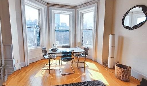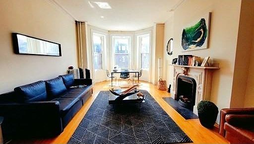 Nestled on the sunny side of Marlborough Street in Boston's Back Bay this is a front facing one bedroom unit which overlooks the charming gas-lit & tree lined street with a bay window, hardwood floors & a fireplace in the living area. The bedroom is spacious with good closet storage. Heat and hot water are included in the rent.