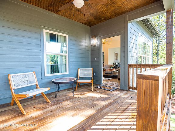 Ready for some summer lake fun? This 4 bedroom/2 bath cabin-style home in the short term rental-friendly neighborhood, The Village at Kowaliga Bay, has everything you need! This beautifully decorated home is being sold completely furnished and offers open living space with lots of room to entertain guests - both inside and outside. The spacious living room features a wood-burning fireplace and opens up into the galley kitchen with breakfast bar. Tucked behind the kitchen is a fabulous wet bar and laundry area with washer and dryer. The split floor plan features an owner's suite with king bed and ensuite bathroom and another bedroom with single bed and trundle. On the other side you will find two additional bedrooms, one with a queen bed and the other with two sets of bunk beds. The outdoor living areas lets you escape to the woods. A large screened-in porch with smart TV is a wonderful feature and leads to the open-air porch with outdoor dining table and gas grill. Enclosed storage area under the house for all the lake toys as well as covered concrete pad with power for golf cart storage makes it convenient for a one minute ride down to the lake. The Village at Kowaliga Bay is a friendly water access community equipped with a clubhouse and pool, boat slips, boat ramps, a fitness center, and on-site boat storage. Be sure to check this one out today!