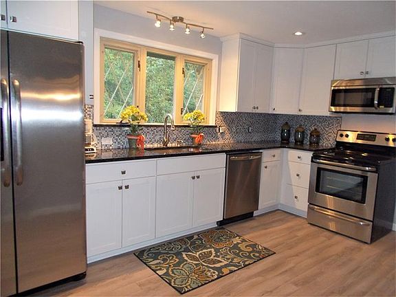 Move-in ready completely renovated colonial ranch offers country living w/ modern updates. Remodeled kitchen boasts new cabinets, new stainless steel appliances, new sink & faucet, recessed lighting. Neutral color palette' features designer colors, new engineered hardwood flooring & new carpeting throughout. Newly remodeled bathrooms w/ new tub, toilet, vanity, lighting, & fixtures. Main level master bedroom. Newly remodeled lower level w/ second full bath w/ walk-in shower, space for two bedrooms, & family room w/ wood burner. Additional space for lower level kitchen & laundry. New roof, water heater, & upgraded (200) electric panel. One-car attached garage w/ breezeway entry as well as one-car integral garage in rear. Screened-in spacious sunroom at front entry. Concrete rear patio offers separate entry to lower level. Wooded rear views, trails, creek, shed. Lush landscaping. All bedrooms feature overhead ceiling fans & cedar-lined closets. Fireplaces in living room & family room.